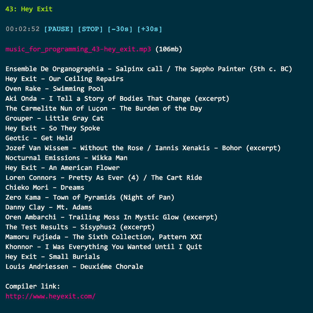 Hey Exit – Music for Programming