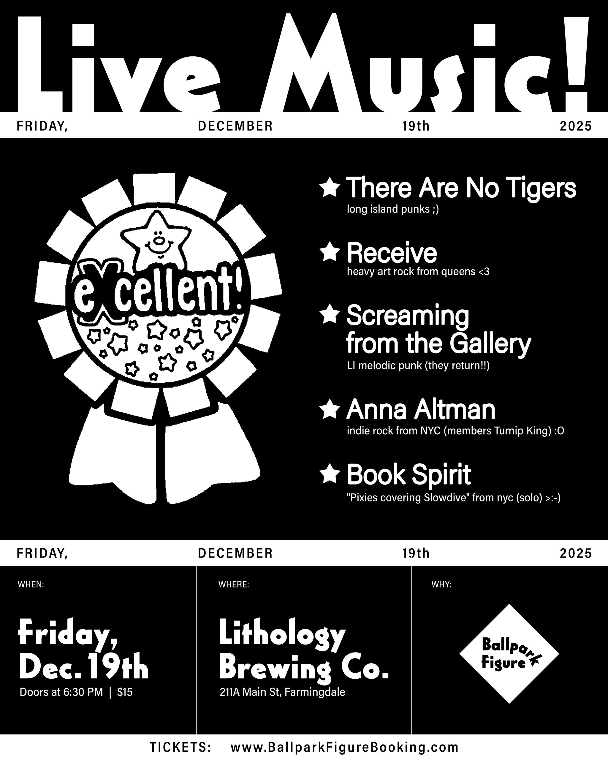 The next day, we’ll be over in Long Island, playing a Ballpark Figure show at Lithology Brewing, with There Are No Tigers, Screaming from the Gallery, Anna Altman, and Book Spirit. Very stoked for this one!